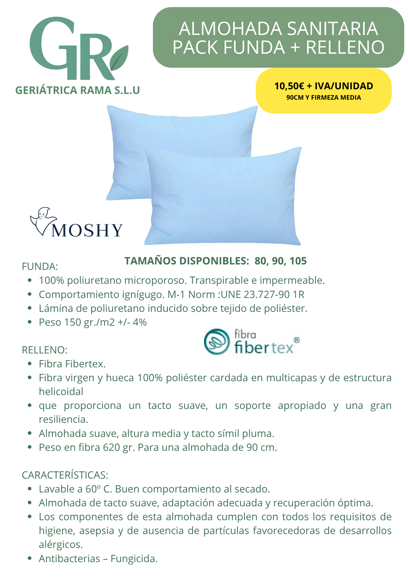 En GERIÁTRICA RAMA ofrecemos una gama completa de productos textiles diseñados para centros hospitalarios, residencias geriátricas y entornos asistenciales. Toallas hospitalarias (varias gramajes y tamaños) Empapadores, entremetidas, baberos. Sábanas y juegos de cama para hospital y residencia Mantas y nórdicos de uso intensivo Fundas impermeables y protectores de colchón Pijamas y batas para pacientes y personal Almohadas sanitarias MOSHY y complementos de descanso