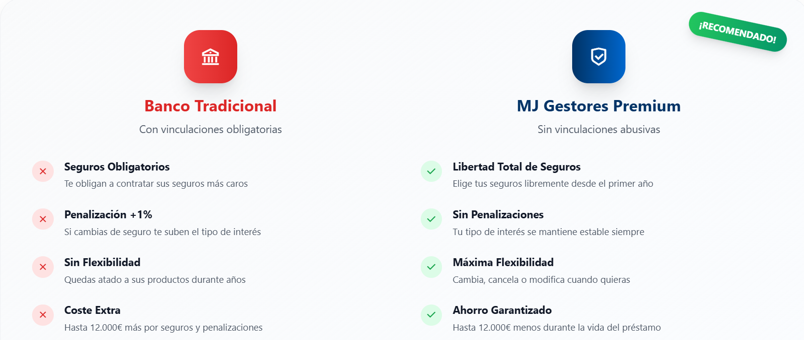 Llévate tus seguros donde quieras sin que el banco te suba 1% el interés Somos los únicos que te garantizan una hipoteca sin vinculaciones abusivas. Tu libertad financiera no tiene precio.