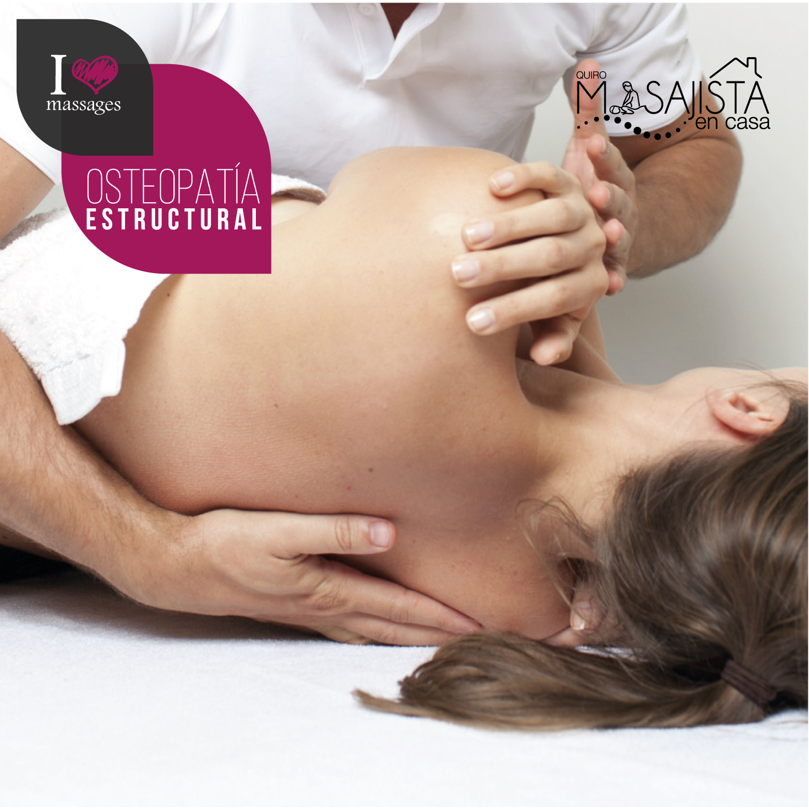 Quiromasaje, Masaje deportivo, Osteopatía estructural, Craneosacral y Visceral, Maderoterapia, Masaje Californiano, Hamacados Armónicos, Lifting Facial Japonés, Drenaje Linfático, Drenaje Moldeador Brasileño , Masaje tántrico profesional , Masaje terapéutico
