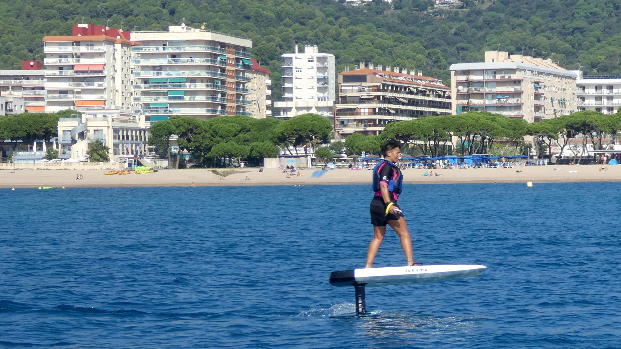 Tabla con foil y motor eléctrico para volar por encima del mar